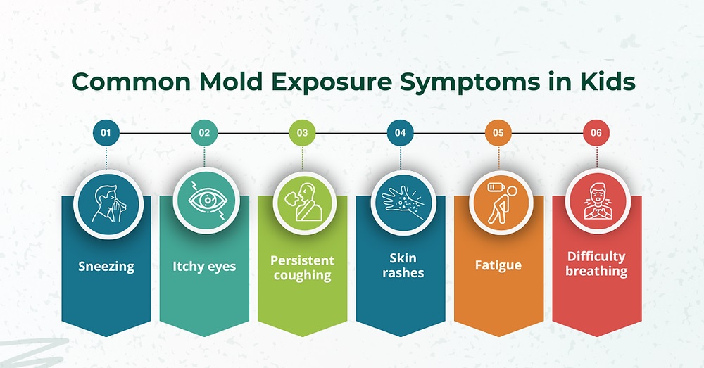 Children are especially sensitive to mold exposure due to their developing immune and respiratory systems. Early signs in kids often mimic common illnesses, which can make diagnosis tricky. Watch for persistent coughing, wheezing, or frequent sneezing. Nasal congestion, runny nose, and itchy or watery eyes are also common symptoms. Additionally, children may experience unexplained fatigue, headaches, or skin rashes. In some cases, mold exposure can exacerbate asthma or trigger new allergic reactions. If your child repeatedly suffers from these symptoms, particularly when indoors, mold exposure should be considered as a potential cause.